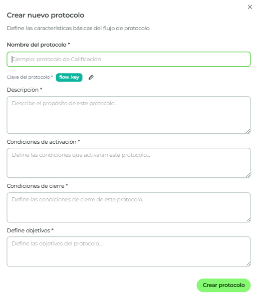 📍 Dónde vive en la plataforma Kit del Asesor → Protocolos → + Nuevo protocolo