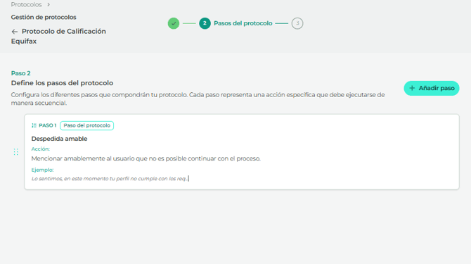 El ideal es tener menos de 4 pasos internos. Un protocolo extenso es difícil de mantener y puede generar conversaciones largas que el usuario abandona.
