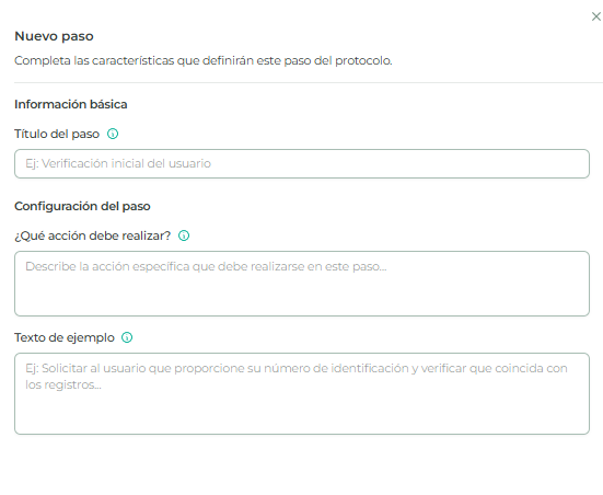 - Texto de ejemplo (Golden Response): opcional pero recomendado. Es el texto exacto que el agente diría en ese paso. Debe sonar humano y tener datos reales del cliente — sin placeholders.